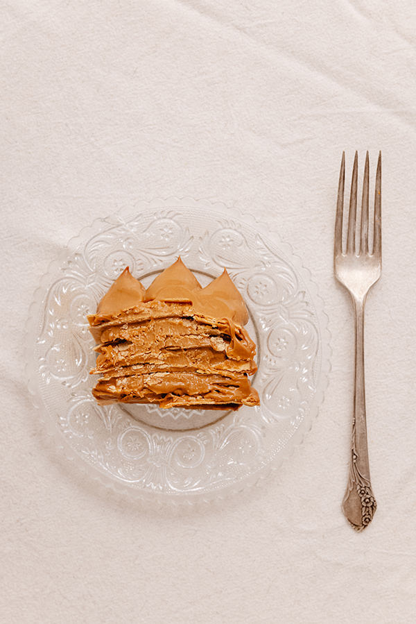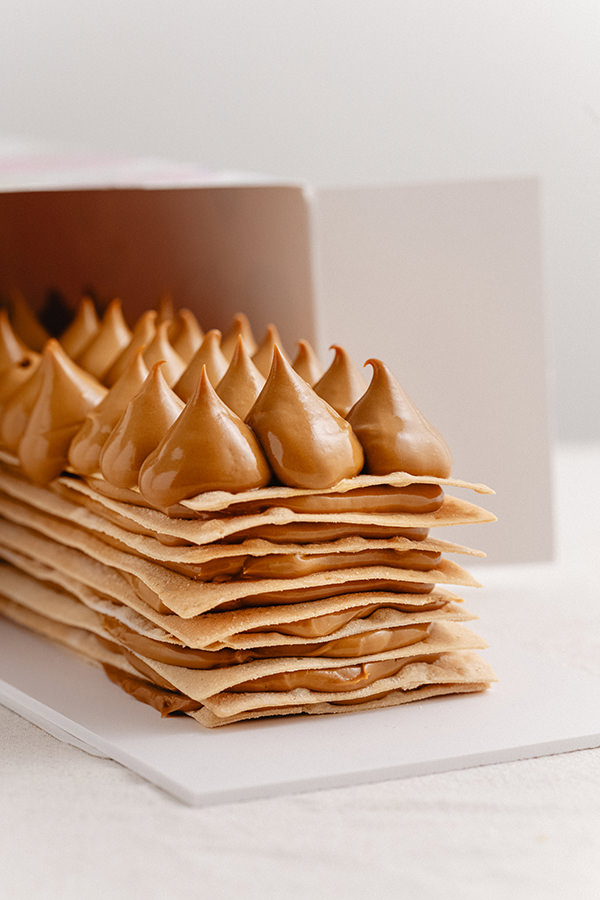 Capas de Hojarasca sin Azúcar relleno de Manjar sin Azucar endulzado con Alulosa.