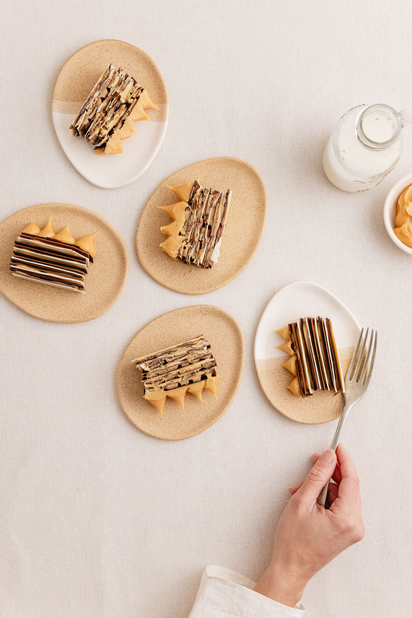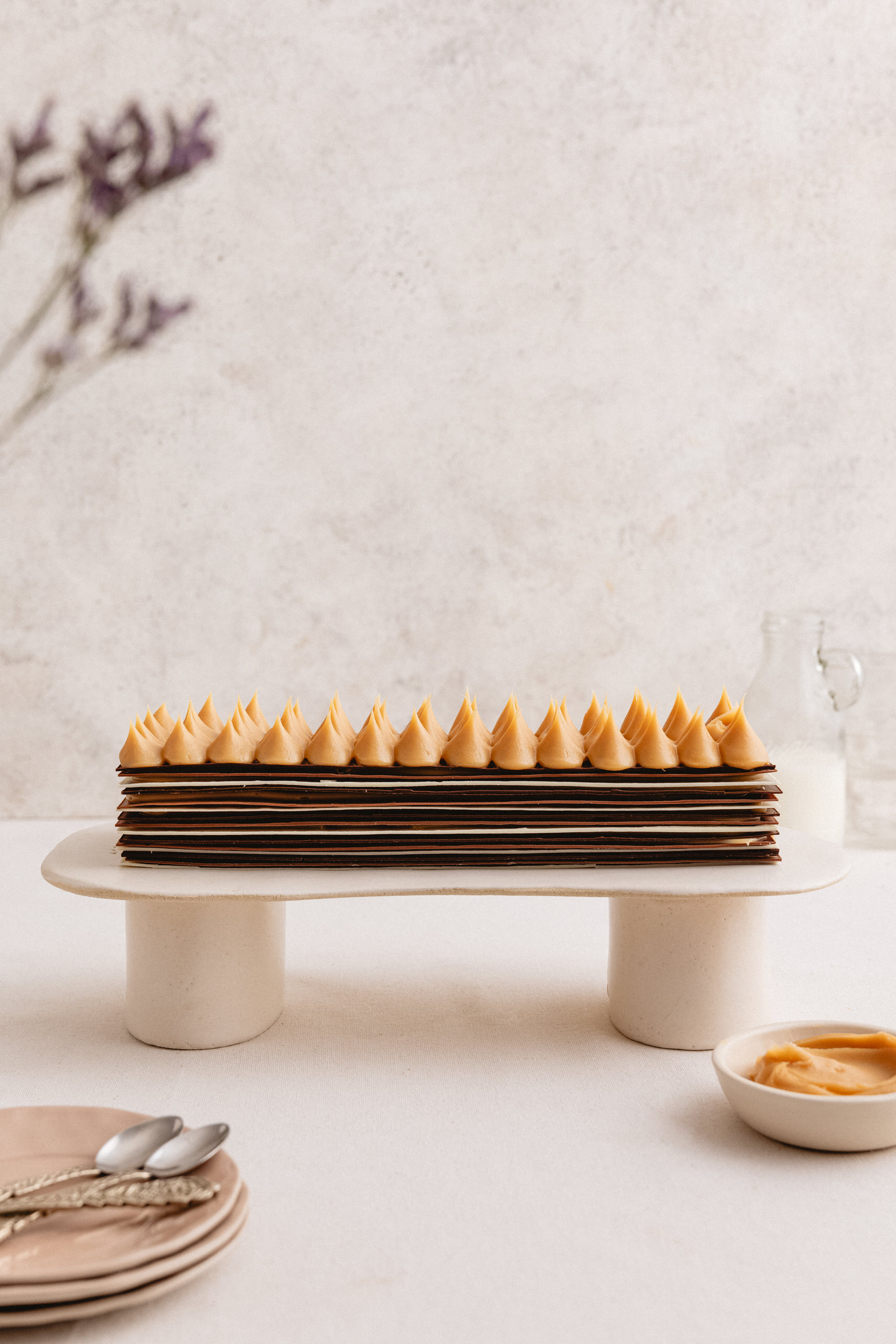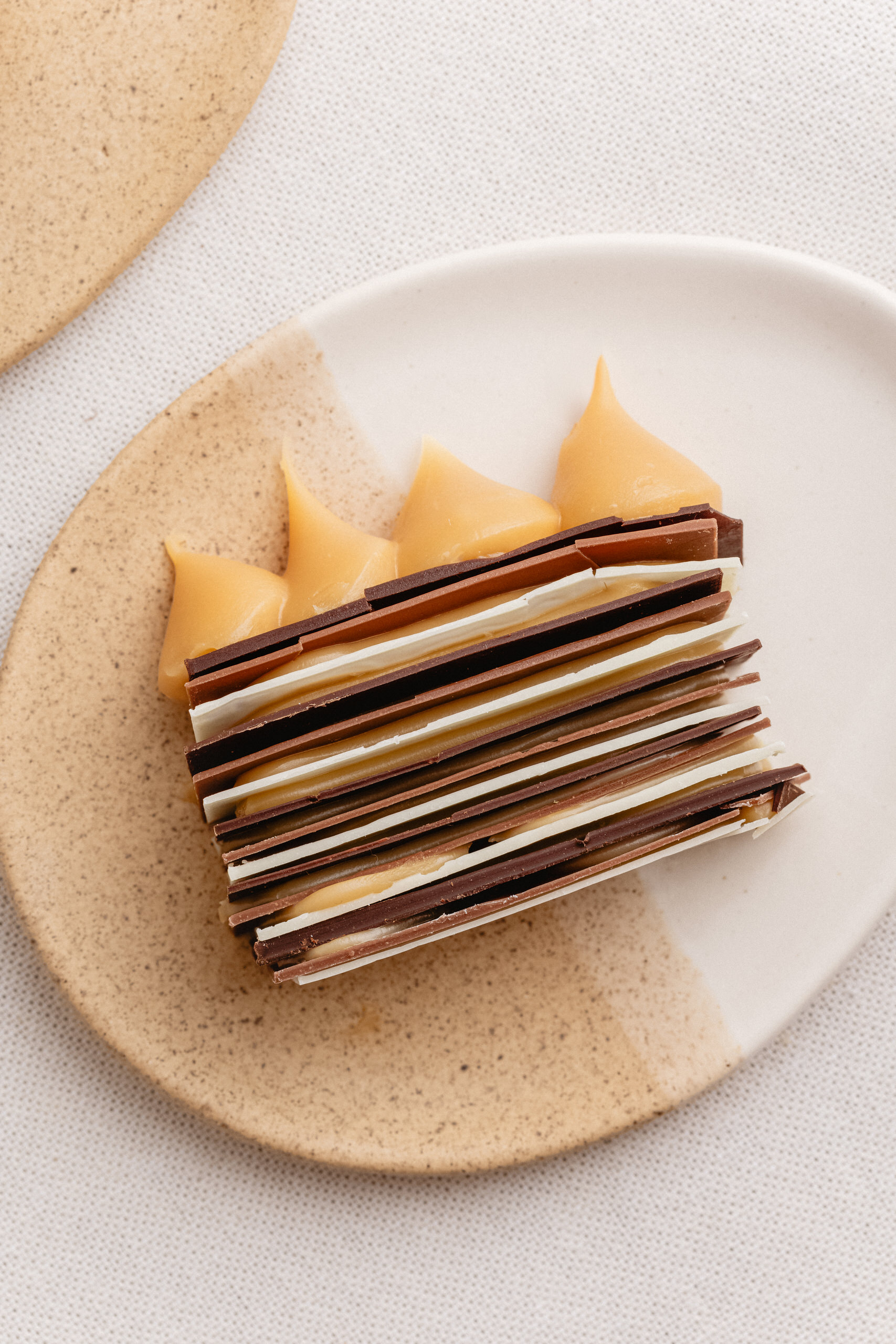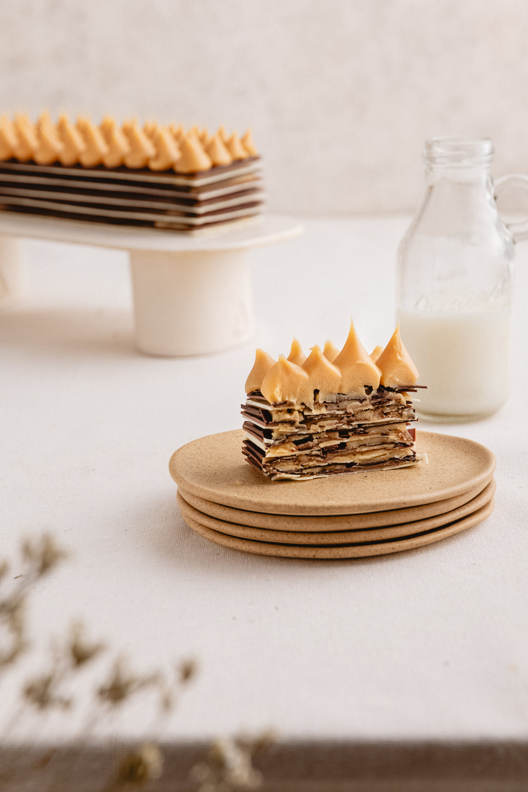 Laminas de Chocolate Semi Amargo y Blanco, relleno de Manjar Artesanal Decorada con manjar