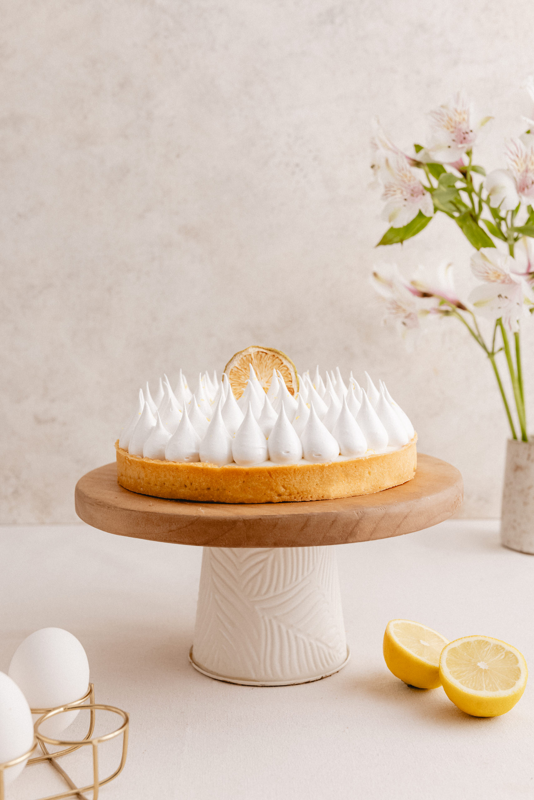 Masa de mantequilla, relleno leche condensada y limón natural. Decorado con merengue y Zeste de Limón.
